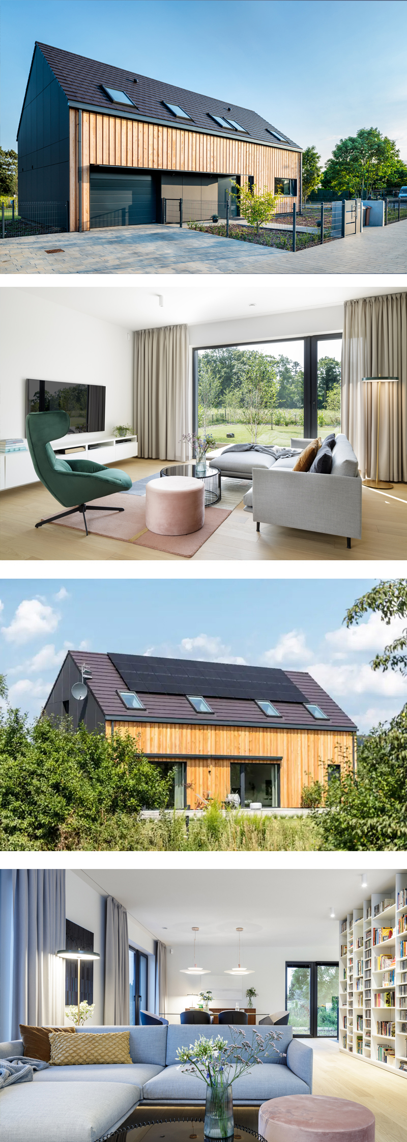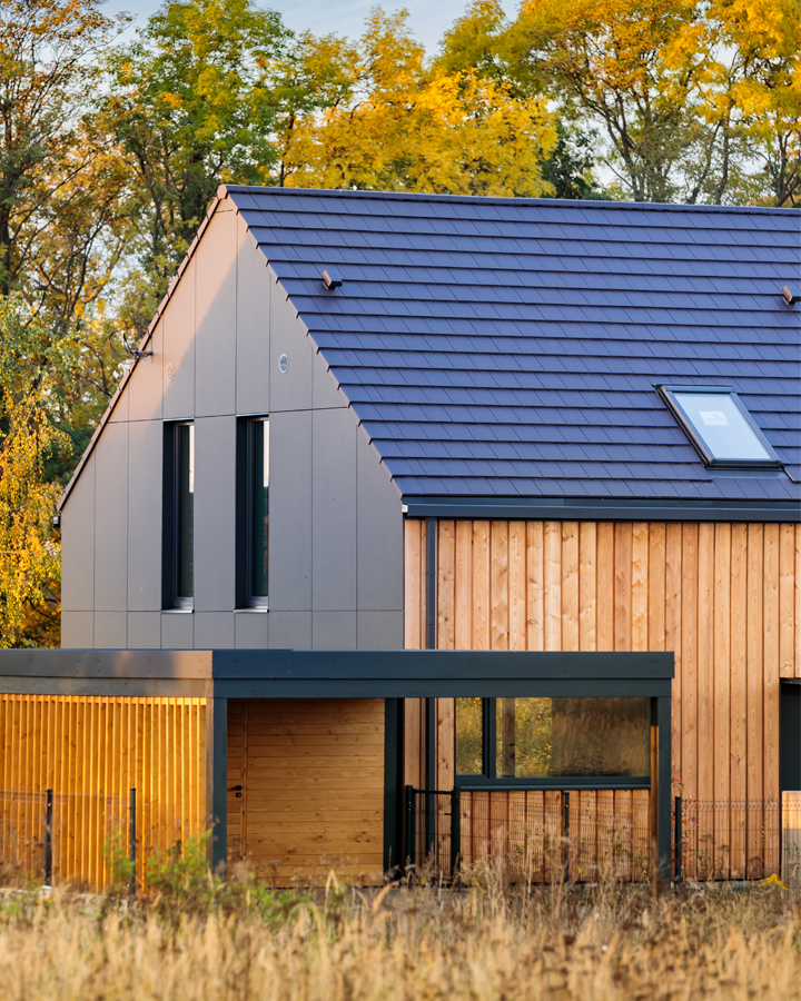 b. Elewacje budynku wentylowana - modrzew syberyjski i płyta włókno-cementowa Equiton na podkonstrukcji