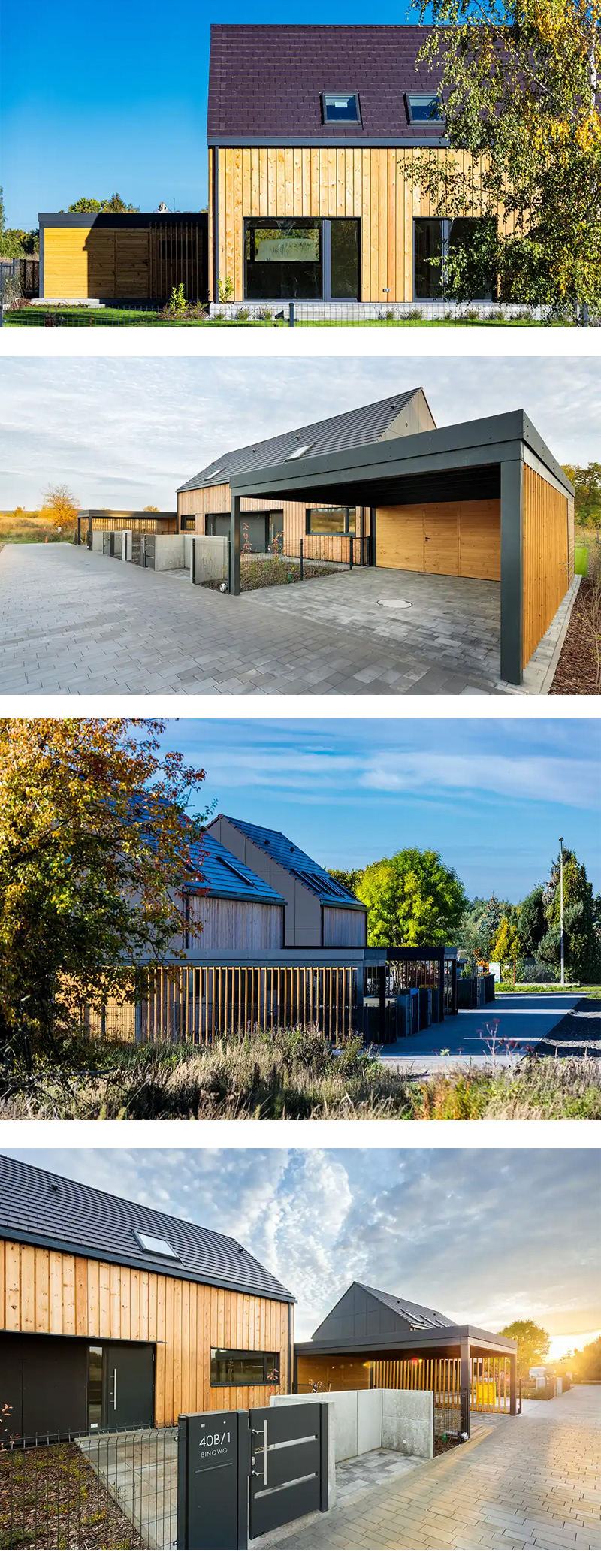 Zeroenergetyczny dom w zabudowie bliźniaczej, o podwyższonym standardzie deweloperskim, położony we wsi Binowo pod Szczecinem.