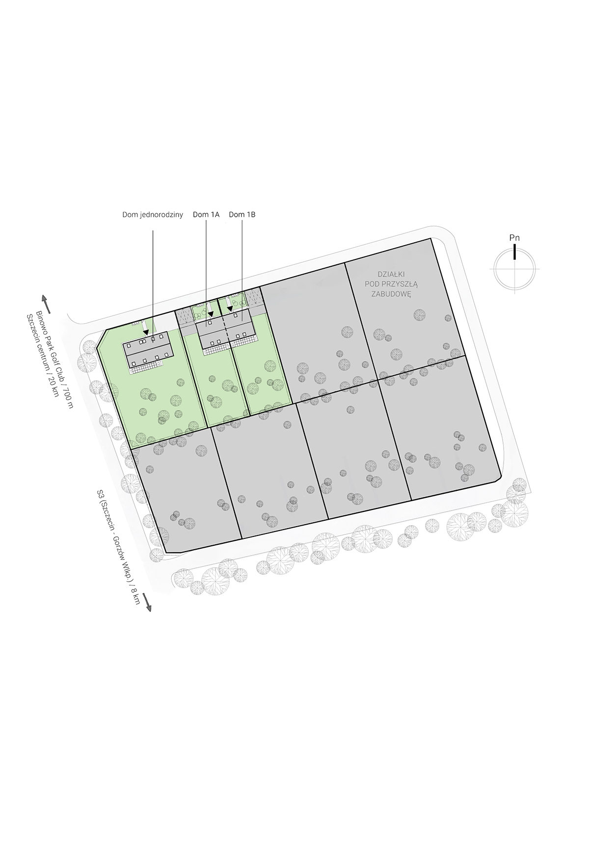 Energooszczędny dom jednorodzinny, o podwyższonym standardzie wykończenia, położony we wsi Binowo pod Szczecinem, 600 metrów do pola golfowego Binowo Park GC.